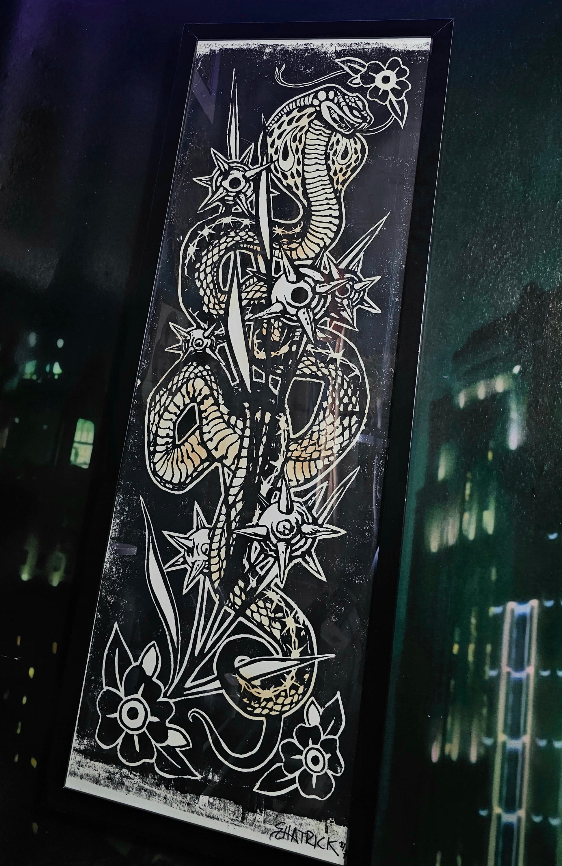12x34 hand carved and burned linocut print on heavy stock paper - limited to 7